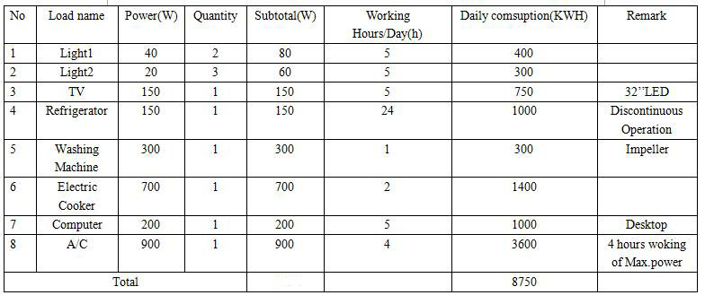 KW System Loading Power and Daily Power Consumption Table