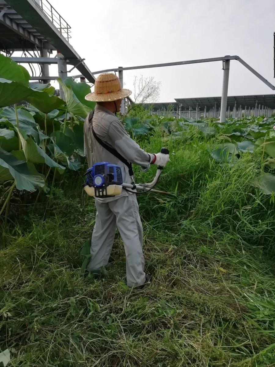 武穴电站地处湖区,土地肥沃,地处低凹潮湿,致使这里的草木生长极旺,一来:影响巡视出入通行障碍;二是:要是任其生长,达到一定高度影响光伏板的采光。针对这种情况,武穴电站包站长果断作出了为期半个月的“清杂行动”的决定,在早会上,要求大家在做好正常的巡视设备检修工作外,每天抽出4个小时的时间做好光伏区的杂草杂树的清理工作,行动前,包站长要求大家做好劳动保护工作,做好防暑工作,穿戴好劳保用品,以防蛇蚊叮咬。(利用好秋后温度下降的有利时机,每人每天清理一段的杂草杂树) 争取用半个月的时间把光伏区的杂草灌木丛清理好,为电站安全高效运行创造良好的生产环境。