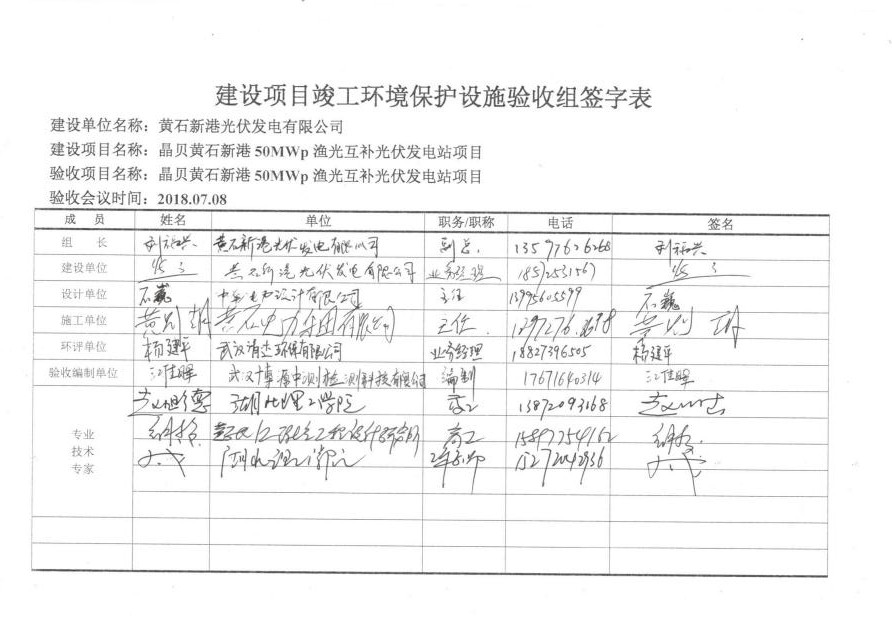 晶贝黄石新港渔光互补发电站项目验收监测表